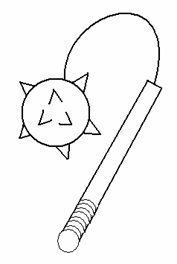 se skládá ze tří částí: koule - zásahová plocha, provaz a topor.