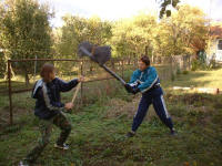 ...Nepříliš úspěšně: nechtěné zhákování meče sekerou. Přesně to, co by